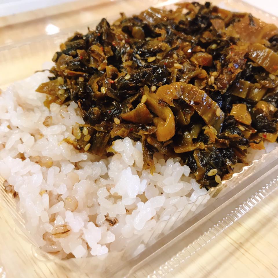 2018年SNSで1番売れた高菜と2018年ネット通販で1番売れたもち麦 (どちらも自称)で、『高菜もち麦ごはん』 を販売予定です。