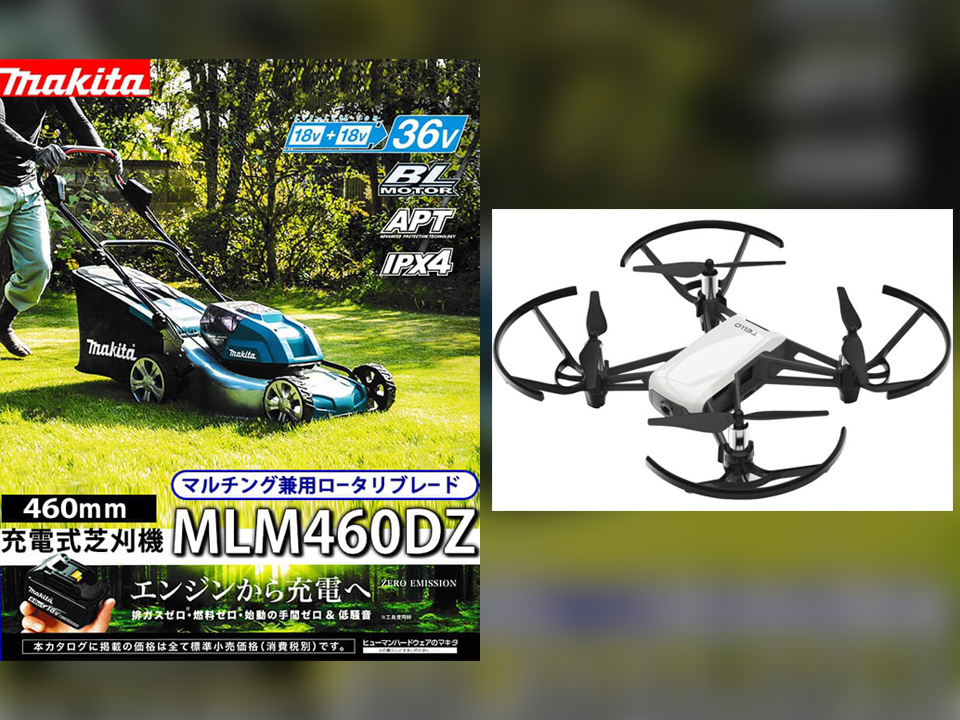 普段なかなか触れる事が少ないと思いドローン2機種を出店します。手のひらにスッポリ収まりiPhoneとの相性も良くって少し練習すれば操作するのが簡単な商品です。そして充電したバッテリーを簡単に装着するとコードレスで動かせられる簡単な芝刈り機を出店します。