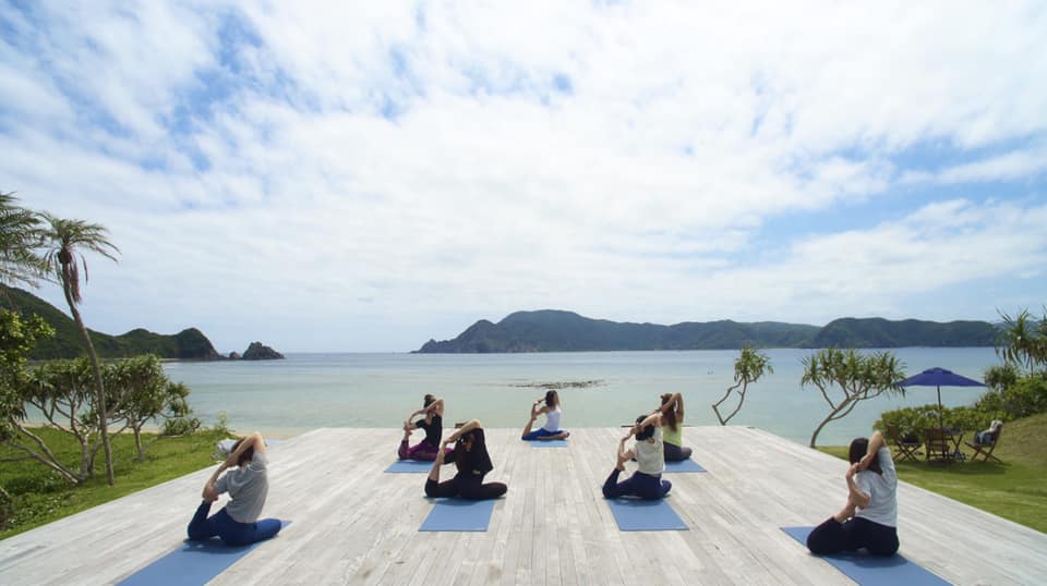 奄美大島のHOTEL THE SCENEから出張ヨガ。 メインステージで30分ほどヨガを通じてお客様と身体を動かしていけたらと思います。物販では、手染めのオリジナル藍染ヨガウェアとTシャツを販売させていただきます。
