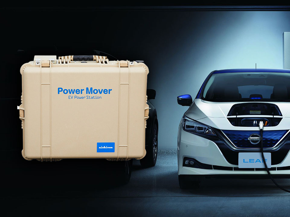 日産リ-フは100%電気自動車です。その日産リ-フに搭載された大容量のEVバッテリ-。このEVバッテリ-はただ走ることに使うだけでなく電力を蓄える蓄電池としても機能します。そのEVバッテリ-に蓄えた電力を活用して電気機器に電力供給を行うことができる可搬型装置『パワ-ム-バ-』このパワ-ム-バ-は車で移動可能な場所ならどこでも電気の供給ができます。非常時(災害時)のご家庭や企業の電源として活用できるほか、野外でのイベント、アウトドアレジャーの電源としても使用できます。長野日産自動車ではこのパワ-ム-バ-を使用し、この短パンフェスへの電力供給をさせていただきます。