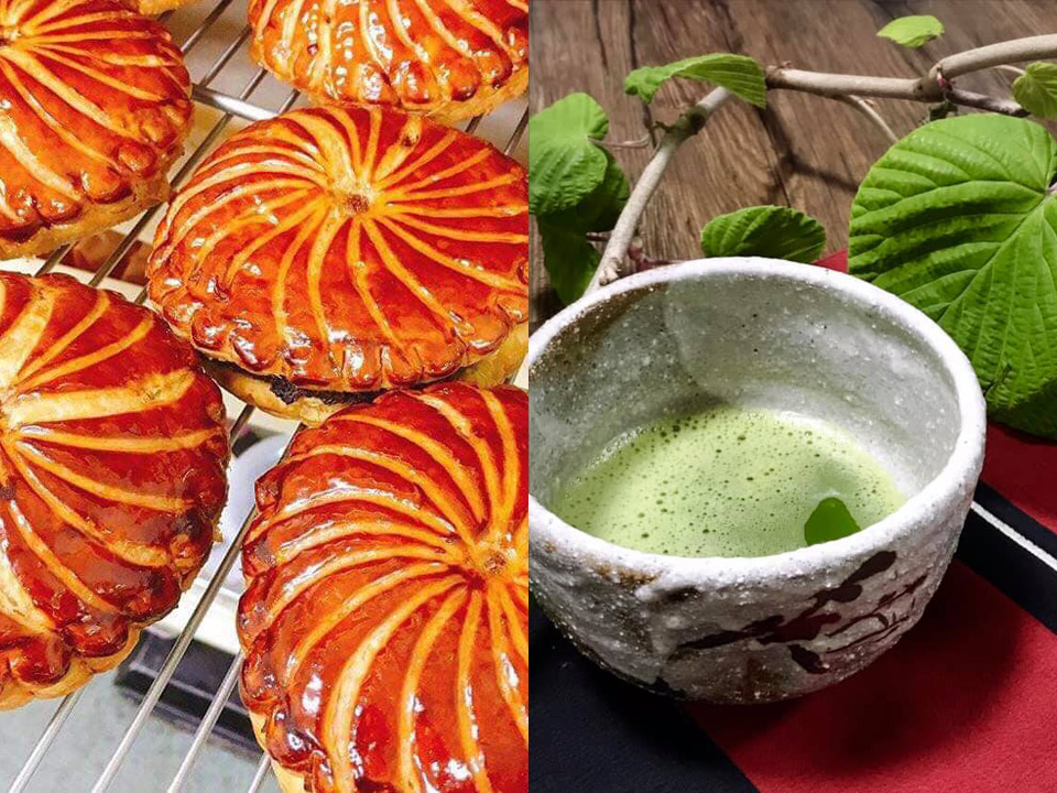 新潟のパティシエール、ウチコが、地元長野のリンゴを使ったガレット・デ・ロワをこの日の為に作ります。ドリンクのお抹茶はご自身で点てていただくこともできるので、和の趣をお楽しみください。お菓子とうつわの販売もあります。