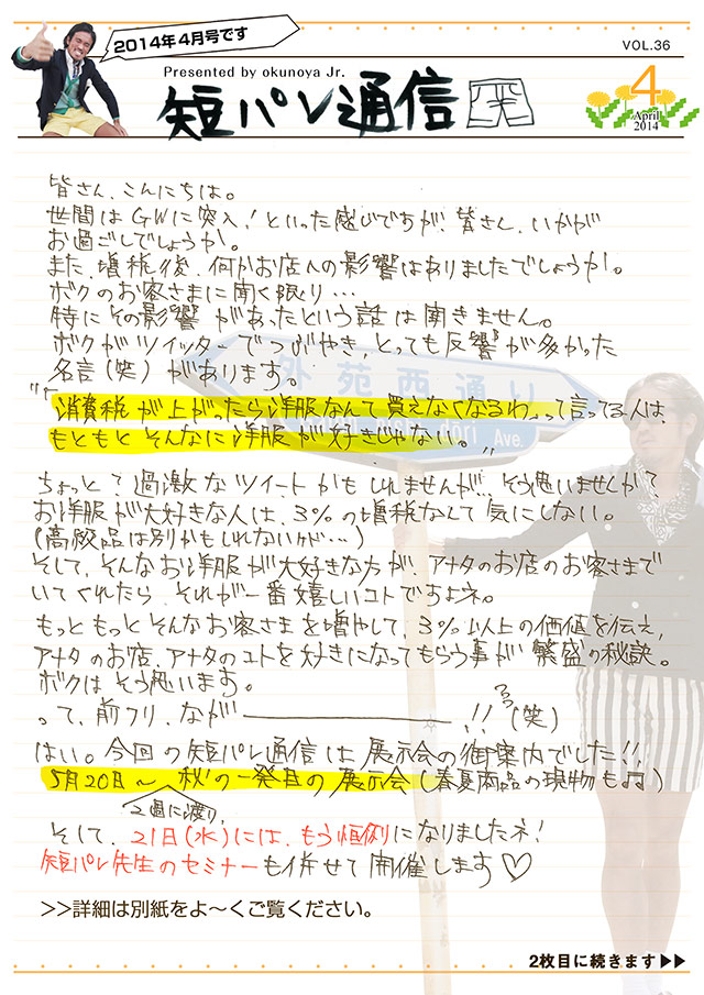 短パン社長が毎月お客さまへ送る手書きのニュースレターです。